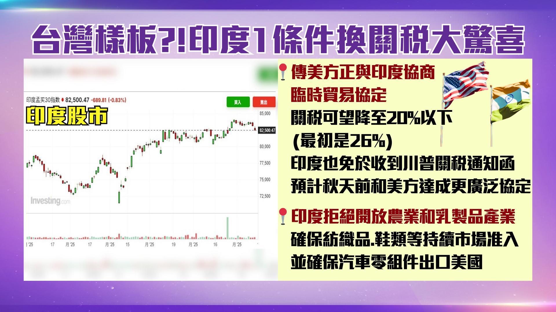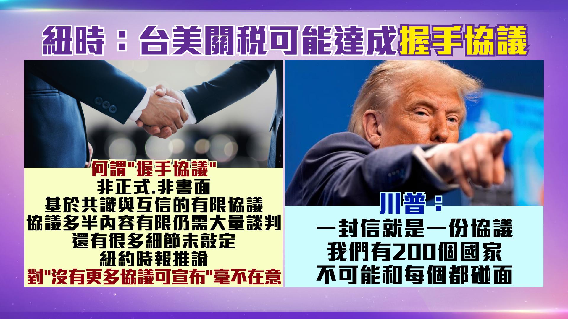 美國總統川普近日發出4波關稅信函,不過台灣至今仍未獲通知。根據《紐約時報》報導,台灣跟印度可能很快與華府達成「握手協議」。